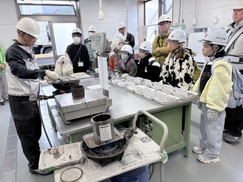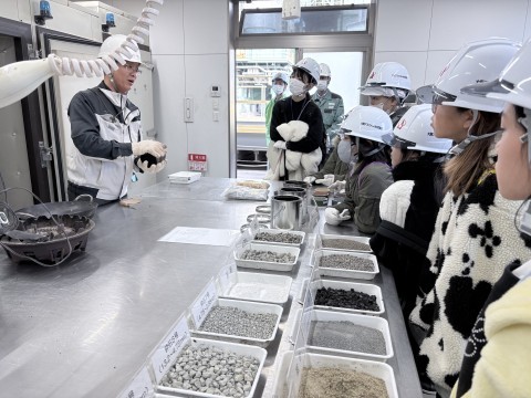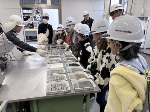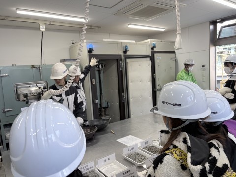 最後に研究室で、アスファルト合剤を作っていただきました。一つ一つ、原材料の重さが細かく決まっていましたね。作る場所に応じて分量を変えていることも知りました。