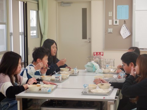 今日の献立は,ハヤシライス,ポテトサラダ,牛乳でした。ハヤシライスが人気で,いつも以上にもりもり食べていました。