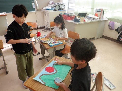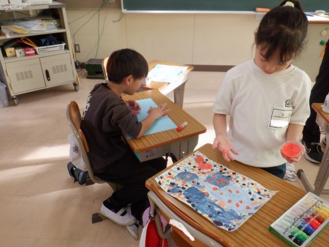 今日も,どろどろ絵の具を指や手のひらにつけて,お絵かきをしました。