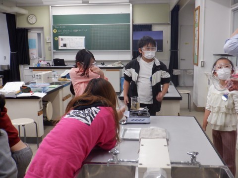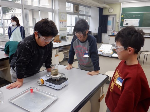 水はどのように温まっていくのか,コーヒーくずの動きを観察しました。