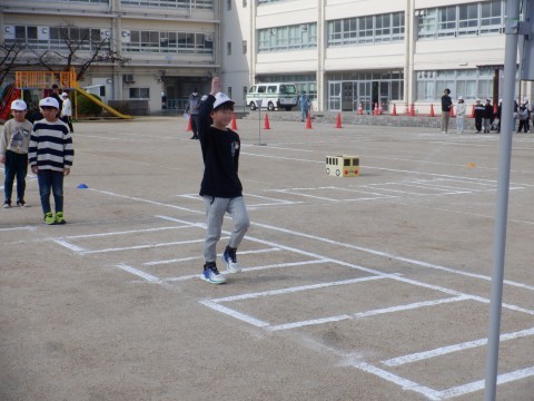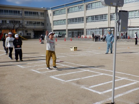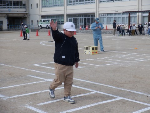 歩行の仕方や自転車の乗り方の説明のあとは,実際に歩行してみました。自動車から見て,歩いていることがわかるように,横断歩道ではしっかり手を挙げて渡りましょう。