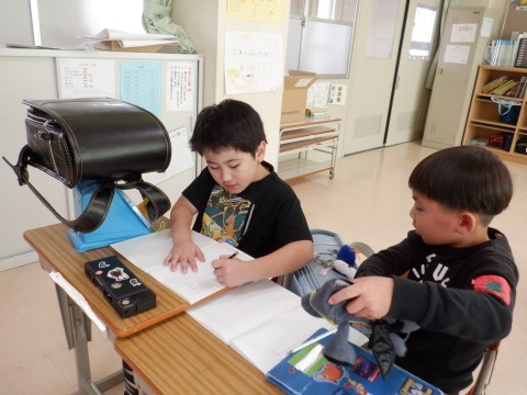 重さ調べをしました。1000グラムより重いと思う,ランドセルや習字道具の重さを予想して,測りました。