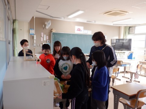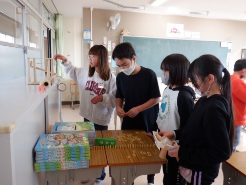 ピタゴラ装置をつなげました。将棋の駒を使ったドミノコースは,はじめはなかなかうまくいきませんでしたが,試行錯誤の結果,うまく倒れてビー玉も転がっていきました。「じゃあ,こうしてみよう!」とあきらめずに考えていました。