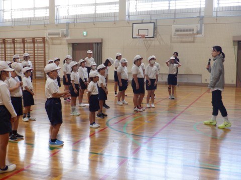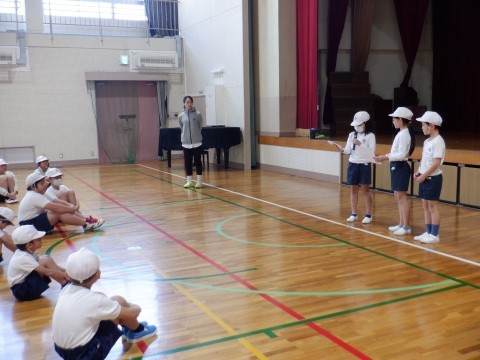 元プロバスケットボール選手である川面茜さんにご来校いただき,バスケットボールを教えていただきました。はじめに,児童会のみなさんから,「今日の日を楽しみにしていました」と挨拶がありました。
