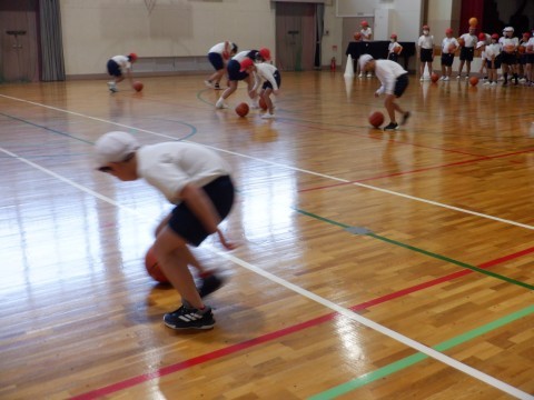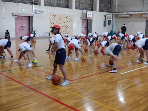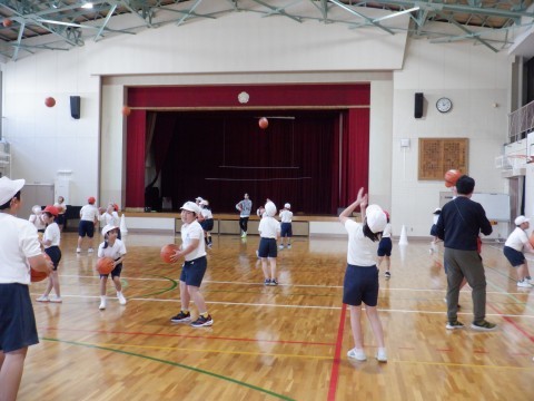 ボールを回したり,高く投げたり,転がしたりと,いろいろな方法でボールに慣れました。背中でキャッチは難しかったですね。