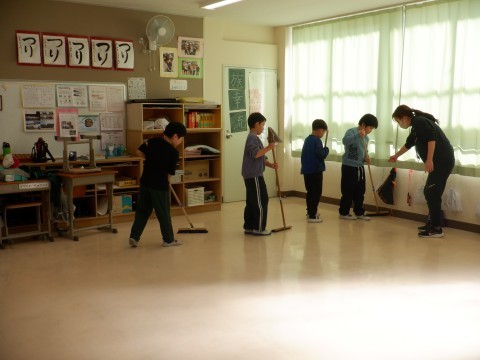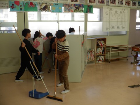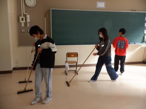 教室の隅々まで意識したり,ロッカーを移動させたりして,ほうきでゴミを取りました。