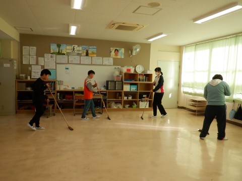 高学年は,自分の教室以外にもトイレや階段なども担当し,いつもより時間をかけてきれいにしてくれていました。「うわぁ,ピカピカになったね」と先生にほめてもらっている人もいました。今日はみんなで一生懸命お掃除できました。気持ちよく,終業式を迎えられそうですね。