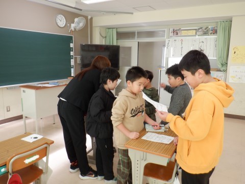 冬休みの思い出を話し合いました。動物園や温泉に行ったことなど,思い出しては笑顔になっていました。また冬休みビンゴをして,友だちに質問し合いました。