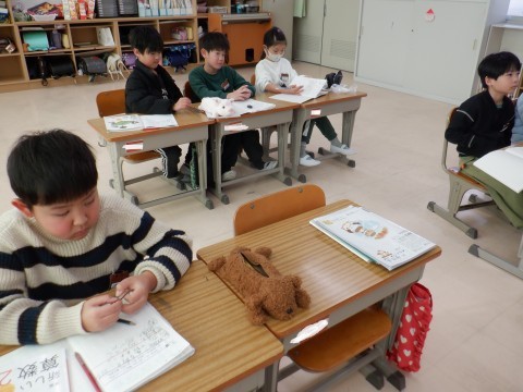 1000を超える数を100を使って表しました。「100を14こ集めた数」はできそうでしたが,その逆の「2300は100をいくつ集めた数」になると難しそうでした。先生と一緒に一つ一つ順序だてて解きました。