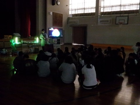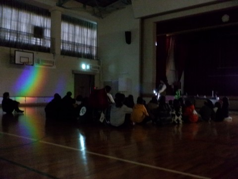 光の特性を使った美しい光のショーを見せていただきました。くるくると模様や色が変わり,とてもきれいでしたね。何度も歓声があがりました。
