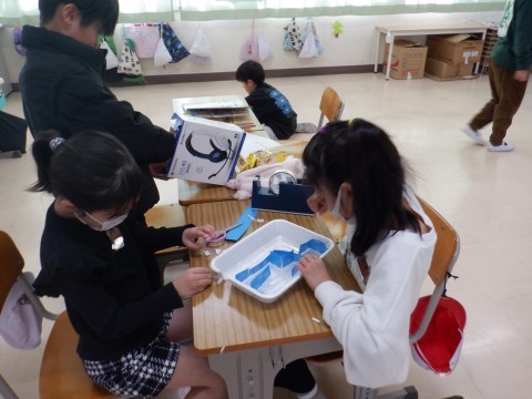 2年生 生活科 公開日 2026/01/19 更新日 2026/01/19 2年 宮園こども園のお友だちを「おもちゃ祭り」に招待します。今日はそのための準備をしました。前回とは違ったおもちゃをつくって,楽しんでもらいます。