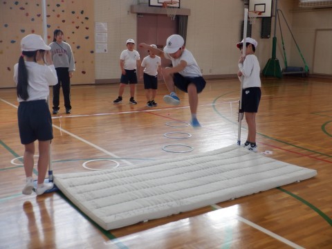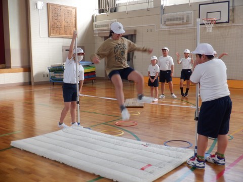 高跳びをしました。今日は助走のリズムに気をつけて活動しました。