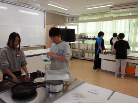 明日の調理実習のための準備をしました。明日は,「野菜のベーコン巻き」,「厚揚げと野菜のチャンプルー」の2チームに分かれて作ります。協力して,おいしいおかずができるといいですね。