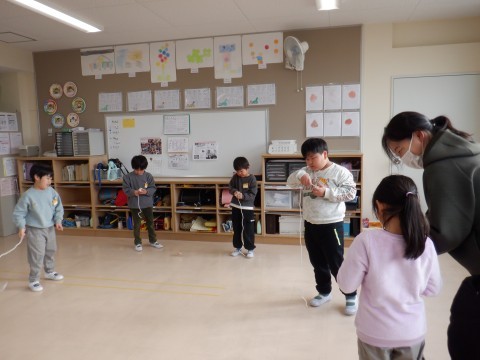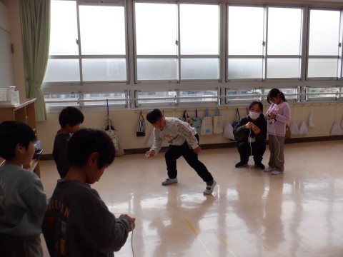 1年生 生活科 公開日 2026/01/20 更新日 2026/01/20 1年 コマ回しをして遊びました。初めてする人や久しぶりにする人が多く,紐の巻き方から練習しました。コツをつかんで,回せるようになるといいですね。
