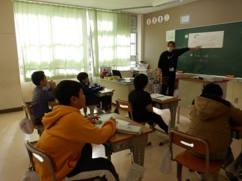 分数と小数の大きさの比べ方について学習しました。