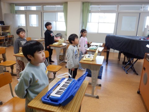 1年生 音楽 公開日 2026/01/22 更新日 2026/01/22 1年 学習発表会に向けて,「きらきらぼし」の合唱・演奏を練習しました。歌詞も解明もよく覚えているので,声や音もよく出ていました。