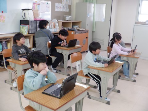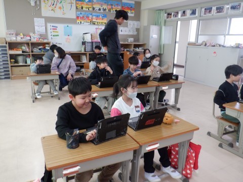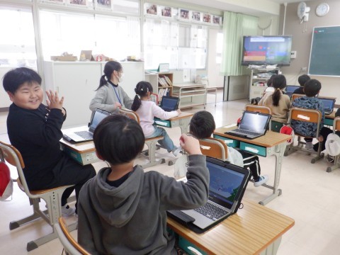 栄養教諭の先生に来てもらって,食育の授業がありました。「オレンジジュースか牛乳,たんぱく質が多いのは,どっち?」とたんぱく質が多く含まれている食品のクイズをしました。正解すると「やったぁ」と歓声があがっていました。