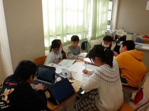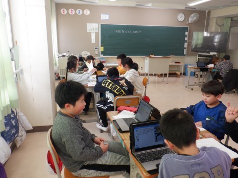 学習発表会に向けて,1年間の総合の学習で活動してきたことをグループで話し合い,まとめていました。