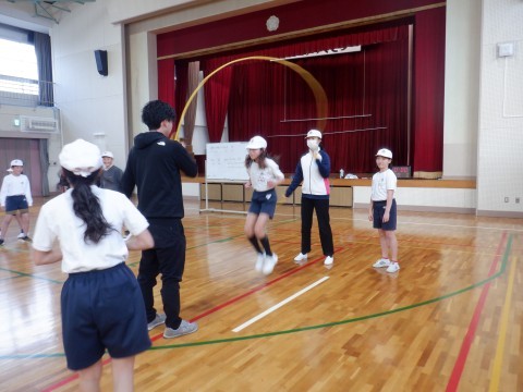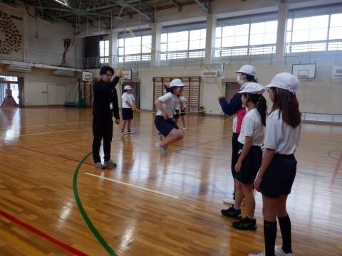 ダブルダッチをしました。はじめは入ることも難しかったですが,3回目の練習にして,「入る」「跳ぶ」までたくさんの人ができるようになっていました。次は「出る」のコツがわかって,広められるといいですね。