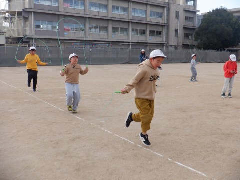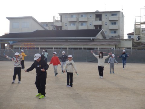なわとび週間の最終日でした。ひっかかってもすぐまた跳び始め,曲の最後まで頑張っている人がたくさんいました。寒い日が続きますが,これからもしっかり体力づくりをしていきましょう。