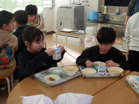 今日の給食は,ご飯,トック,ビビンバ風,牛乳でした。ご飯にビビンバをのせて,おいしくいただきました。