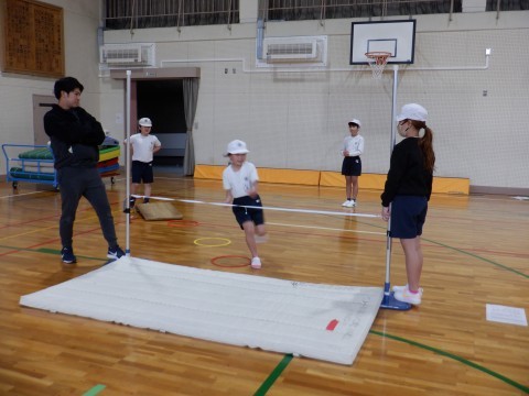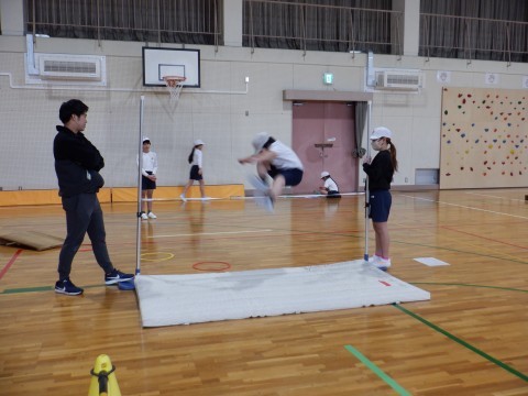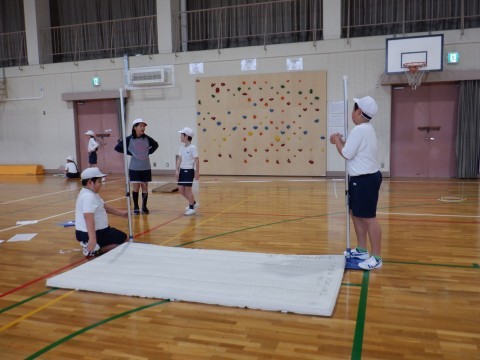 高跳びをしました。うまく跳べている人にコツを尋ねるなど,友だちと学び合っていました。