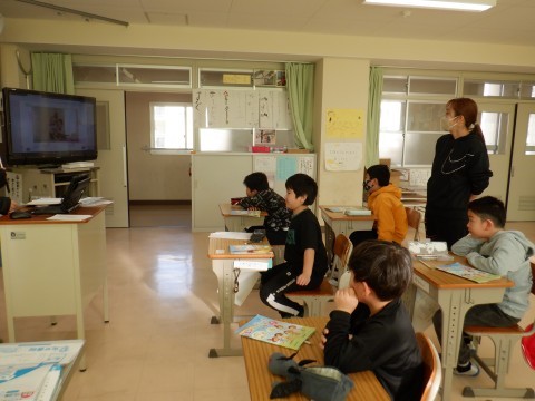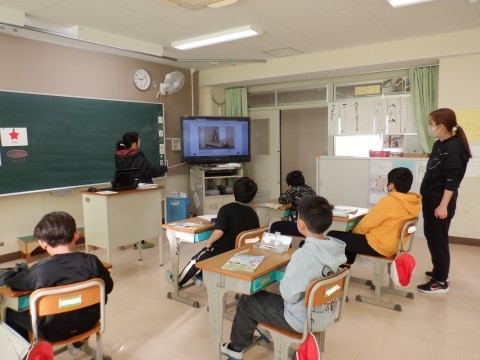 "What colour is it?"動画を見ながら,色や形の英語表現に慣れました。