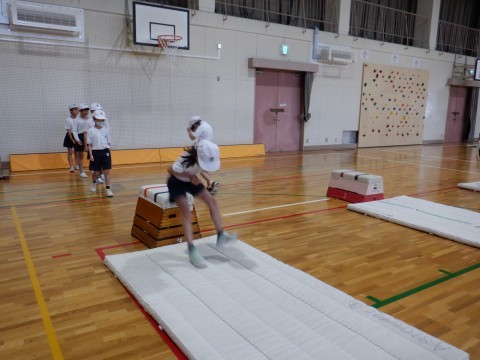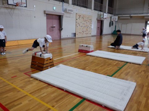 跳び箱の練習をしました。手を置く位置や足の高さに気をつけて,練習しました。