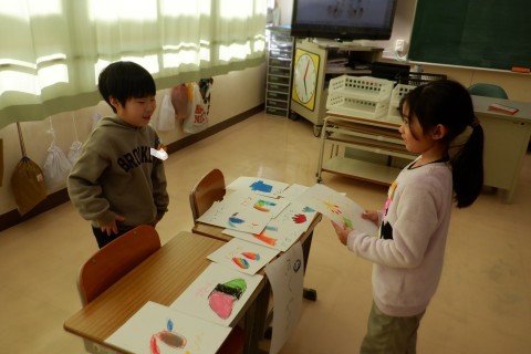「ものの名まえ」の学習で,お店屋さん,お客さんの役に分かれてお店屋さんごっこをしました。
