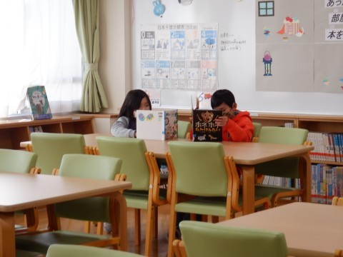 図書の時間がありました。自分の読みたい本を選んで,静かに本を楽しんでいました。