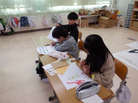 今日も紙版画の製作をしました。どこにどんな材料を使うのか,考えながら作っていました。