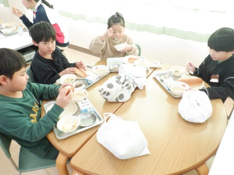 給食の時間 公開日 2026/02/02 更新日 2026/02/02 学校紹介 今日の給食は,黒糖パン,クマラスープ,野菜ソテー,焼きウインナー,牛乳でした。クマラスープはニュージーランドのお料理だそうです。少し甘くて,おいしかったですね。
