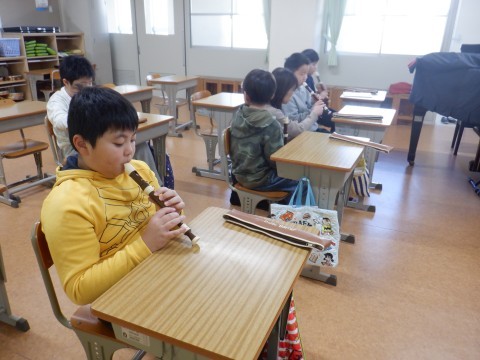リコーダーで「ゆかいなまきば」を練習しました。何度も同じ部分を繰り返し,よく頑張っていました。