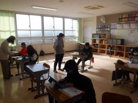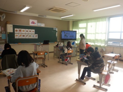 "What do you want?"の表現を使ったお店のやりとりを6年生に聞いてもらうための準備をしました。