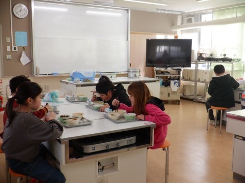 今日の給食は,ご飯,はりはりうどん,かきあげ,昆布の佃煮,牛乳でした。午後からの学習発表会に向けて,しっかり食べました!