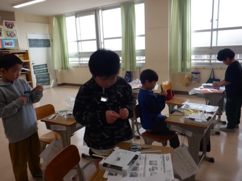 3年生 図工 公開日 2026/02/12 更新日 2026/02/12 3年 「ためしてあそんでマグネット」の活動で,ひかれあったり,離れたりする磁石の性質を使って,おもちゃをつくります。前回描いたイメージ図をもとに,土台を作りました。
