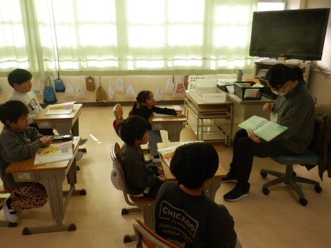 「『すき』からうまれた『そらまめくん』」のお話に出てくる「そらまめくんのベッド」を読んでもらいました。この本を書いたなかやみわさんの子どもの頃の話から,自分の好きなことや自分のいいところを見つけました。