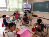 チューリップの観察をしました。少し伸びてきています。アサガオのときとはまた違った伸び方ですね。
