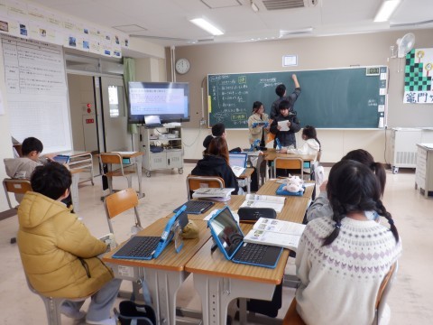 大阪府の漁港について調べたことを発表しました。漁港で働く人の仕事や取れる魚の種類,課題などがわかりました。「こんなにたくさんの種類の魚がとれるんだなぁ」と驚いていました。