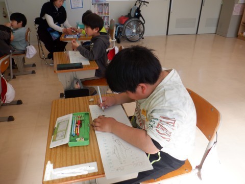 図を描いて考える問題を解きました。考え方を一つひとつ確認しながら,答えを求めました。