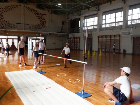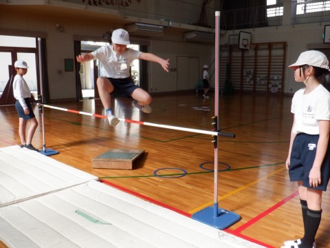 踏切や助走等,課題に合ったコーナーで練習しました。踏切に戸惑っていた人がいましたが,思い切りよく踏み切って,跳び越せていました。