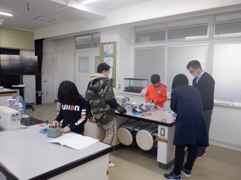 電磁石を強くするためにはどうしたらいいのか考えました。コイルの巻き数や電池の数を増やして,比べてみました。