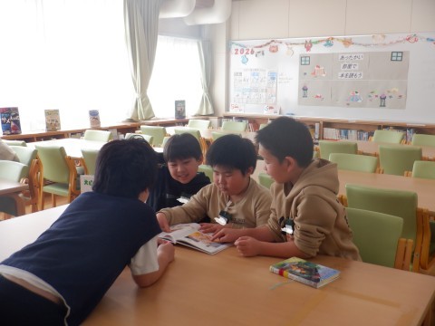 図書の時間がありました。友だちと「大ピンチ図鑑」を楽しんでいました。また自分で好きな本を選んで,静かに読んでいる人もいました。