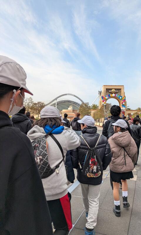 ユニバーサルスタジオジャパンに到着しました。入場してからも、「あれは何かな?」とワクワクした様子です。