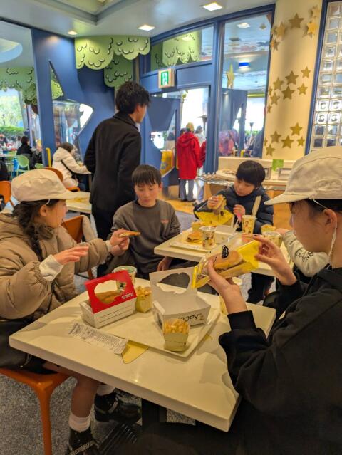 1つ、2つアトラクションを楽しんだ後、みんなでお昼を食べました。
