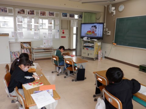 「山のようなオムライス」のように,様子を表す言葉や例えを使って,絵に表されている様子を文にしました。