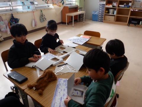 説明書を見ながら,ギターを組み立てました。ステキなギターになるように,色をぬったり,折り紙で飾りをつけたりしていきます。