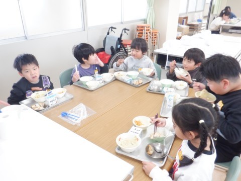 今日の給食は,ご飯,とんこつラーメン,キャベツのソテー,焼き餃子,牛乳でした。焼き餃子が人気でした。