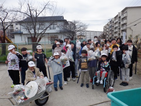 全学年で,分担を決め,地域に落ちているゴミを拾いました。3・4年生の総合的な学習の時間で,普段お世話になっている宮園地域のためにできることはないかと考え,全学年に協力を呼びかけ,実現したものです。「こんなにゴミが落ちているなんて,びっくりした」「自分たちはゴミを出さないようにしないと」「いっぱいゴミがあったけど,楽しかった」という声がありました。楽しみながら活動できてよかったです。これからも,自分たちにできることは何か考え,できることをやっていけるといいですね。