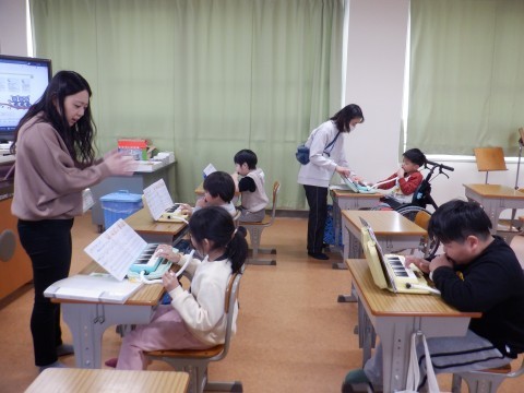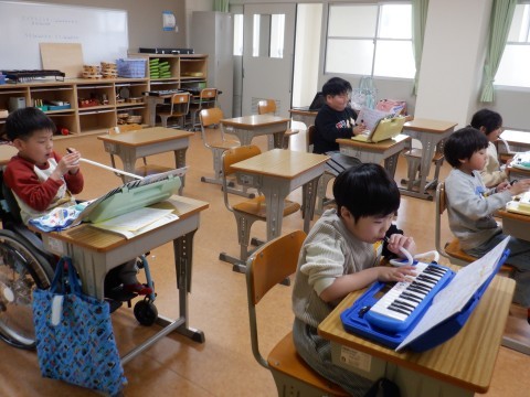 「指くぐり」や「指またぎ」を使って,「ひいてみよう」を上手に演奏していました。これから,「聖者の行進」を練習していきます。